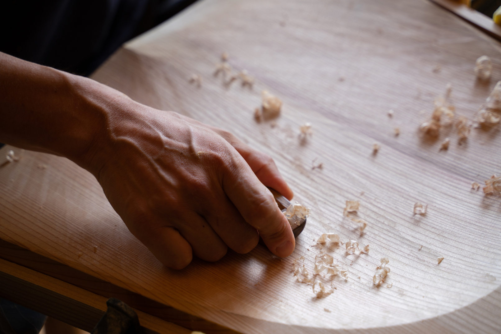 サンドペーパーによる仕上げからは得られない、鉋だけが作り出す光と質感によって、